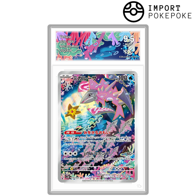 Tauchen Sie mit dieser atemberaubenden Version in die Tiefsee ein Seltene Kunst (AR) von Delestin. Diese „Full Art“-Karte aus der Erweiterung Uraltes Gebrüll (SV4k) bietet eine Explosion von Neonfarben, die die Wasserfauna darstellen, verstärkt durch den dynamischen Grafikstil