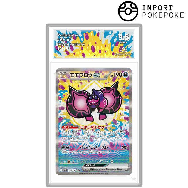 Dieses SAR bietet eine faszinierende Inszenierung von Pêchaminus und fängt seine mystische und schelmische Aura ein. Die japanische „High Class“-Textur ist besonders auf die giftigen Raucheffekte und die Hülle des Pokémon eingearbeitet und erzeugt so eine einzigartige visuelle Tiefe, die speziell für die seltensten Karten im Block gilt.