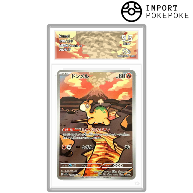 Une illustration réconfortante issue de l'extension Mega Dream. Cette version Art Rare (AR) nous montre Chamallot qui se balade près d'un volcan en eruption, entouré de roches volcaniques fumantes, illustrant parfaitement sa nature flegmatique et sa prédilection pour la chaleur.