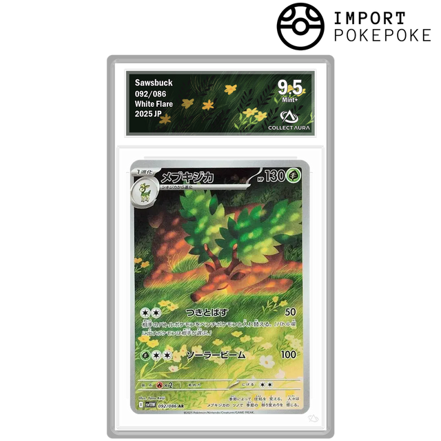 ID : 092/086. Type : Plante. Niveau 1. Finition holographique texturée premium, spécifique aux raretés AR de la série japonaise White Flare.
