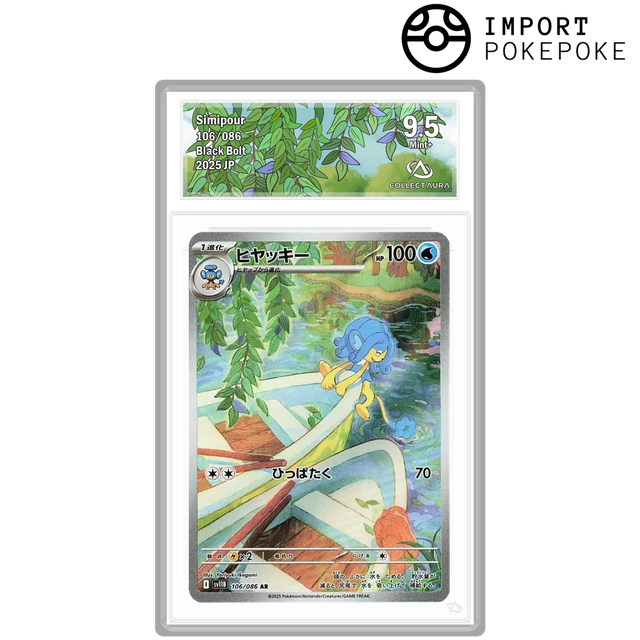 Le fini holographique spécifique à la version japonaise SV11b accentue les effets de cascade, offrant une profondeur visuelle saisissante à cette pièce de collection.
