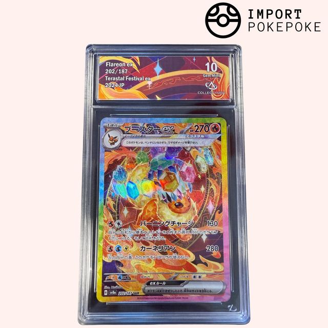 ID : 202/187. Type : Feu. Pokémon ex (Niveau 1). Finition holographique texturée ultra-premium, issue du set original japonais Terastal Festival.