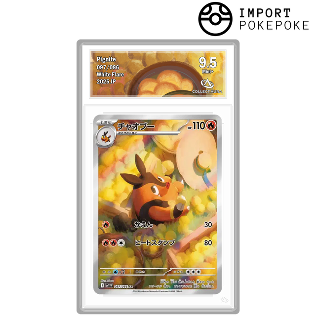 ID : 097/086. Type : Feu. Niveau 1. Finition holographique texturée premium, spécifique aux raretés AR japonaises du set White Flare.