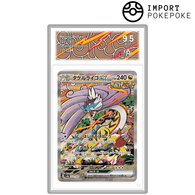 Cette SAR dépeint Ire-Foudre dans un environnement sauvage majestueux. La technologie de texture japonaise premium souligne la longueur impressionnante de son cou et ses attributs électriques, créant un jeu de lumière intense qui magnifie son aspect Téracristal Stellaire.