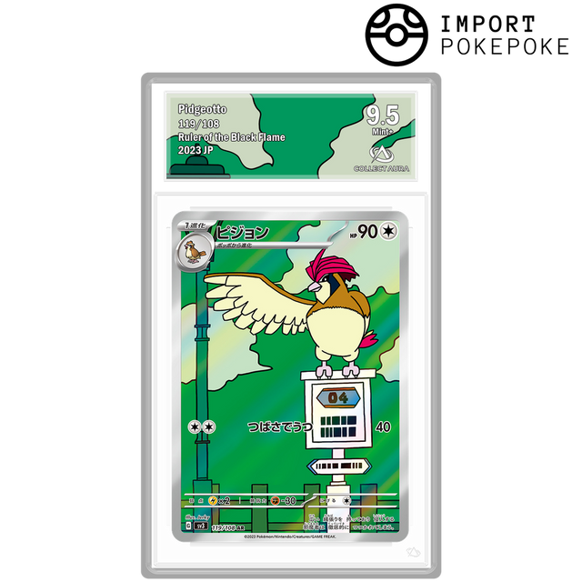 Le trait de Jerky apporte une modernité absolue à cette carte, intégrant le Pokémon dans un décor harmonieux et vibrant.