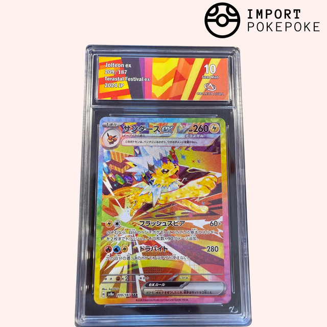 Une illustration "Special Art" électrisante mettant en scène Voltali dans un décor dynamique. La précision du trait et l'application des textures Téracristal sur ses épines capturent parfaitement l'énergie brute de ce Pokémon, le tout avec le fini premium des SAR japonaises.