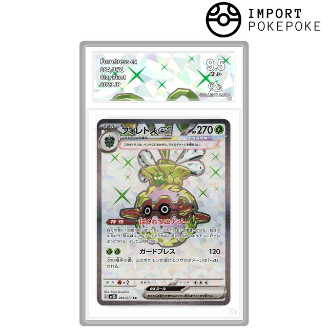 Lo splendore della fortezza. Questa versione Super Rara (SR) di 5ban Graphics arricchisce Foretress ex con una texture cristallina "incisa" e sorprendenti riflessi smeraldo sull'edizione giapponese.