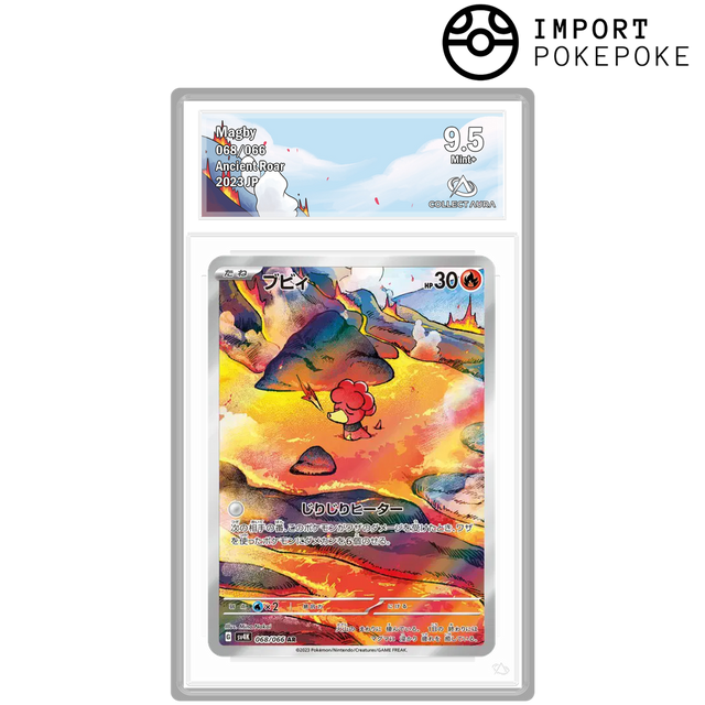 Immergiti in un paesaggio vulcanico infuocato con questa versione Art Rare (AR) di Magby . Tratta dall'espansione Ancient Roar (SV4k) .