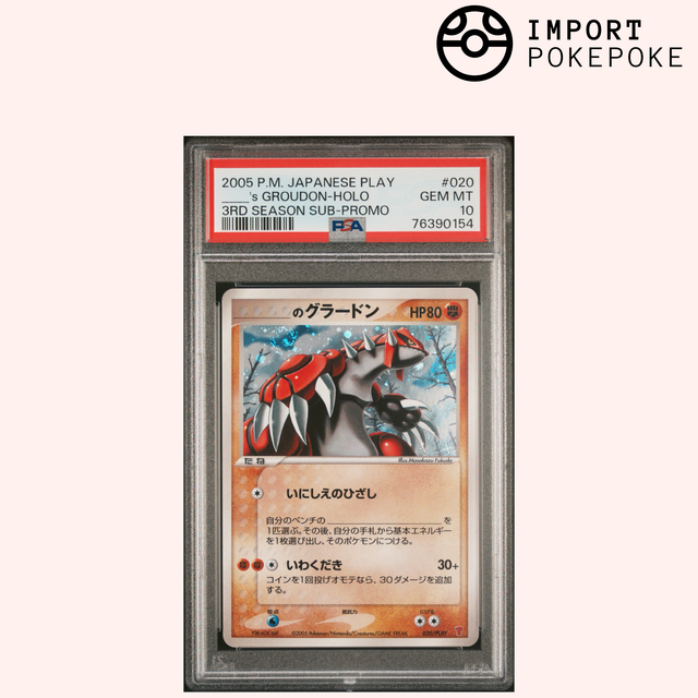 Un duo leggendario del programma giapponese Pokémon PLAY (2005), con Groudon e Kyogre in versione olografica sub-promo. Due carte iconiche, classificate PSA 10 GEM MINT , diventate estremamente ricercate dai collezionisti di carte vintage.