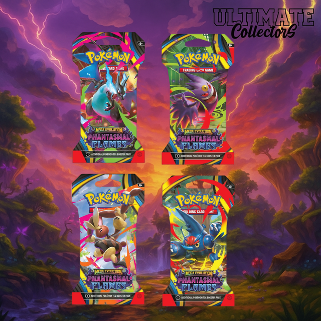 Plongez dans l’univers intense de Flammes Fantasmagoriques, la nouvelle extension du bloc Méga-Évolution mettant à l’honneur Méga-Dracaufeu X, Mega Ectoplasma, Mega Lockpin et Mega Scarhino. Chaque booster contient des cartes inédites et puissantes, parfaites pour enrichir votre collection et renforcer vos stratégies !