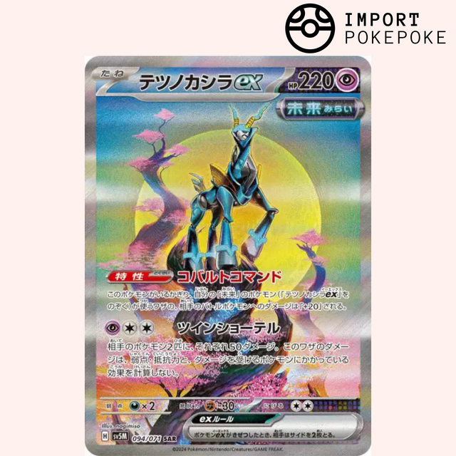 L’arbre rose à gauche de la scène apporte une touche poétique et futuriste, soulignant l’élégance de ce Pokémon Paradoxe.