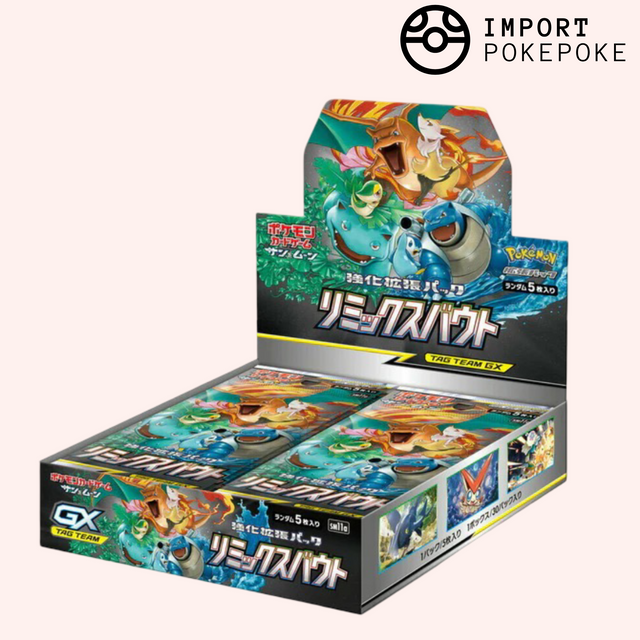 Display Pokémon Remix Bout, SM11a japonais, coffret Pokémon TAG TEAM GX, boosters Pokémon Soleil & Lune, display Pokémon Japon SM11a, Tortank Dracaufeu Florizarre TAG TEAM, cartes Pokémon japonaises à collectionner, display rare Remix Bout Pokémon JCC.