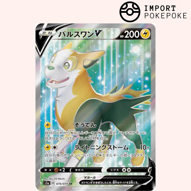 Issu de la série japonaise S1a - VMAX Rising du bloc Épée & Bouclier, Fulgudog V incarne la vitesse et la puissance électrique à l'état pur. Cette carte Super Rare arbore une illustration éclatante, mettant en valeur ce fidèle Pokémon prêt à bondir dans la bataille.