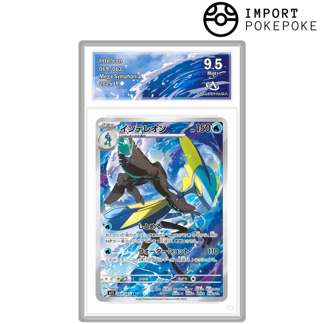 Numérotation : 069/063. Rareté : AR. Type : Eau. Carte holographique à bords argentés avec traitement de texture spécifique aux tirages japonais du bloc Méga Évolution.