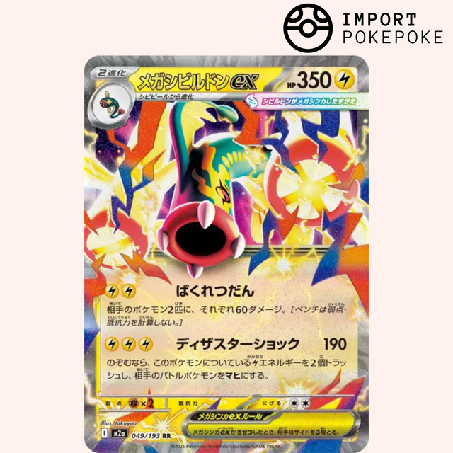 💥 Méga-Ohmassacre-ex débarque avec une intensité électrique rarement vue ! Évolution ultime de Ohmassacre, cette carte Double Rare (RR) issue de l'extension Méga Dream Ex