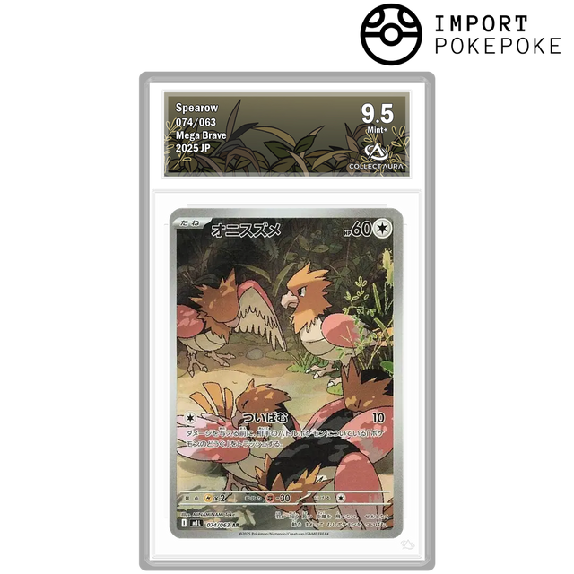 ID : 074/063. Type : Incolore. PV : 60. Attaque : Picpic (20). Traitement holographique mat avec reflets argentés sur les plumes, exclusif au set Mega Brave.