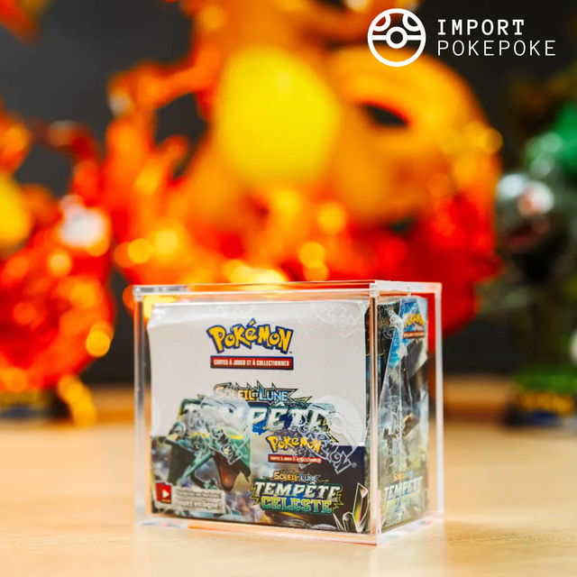 Sublimez et protégez vos plus beaux Displays Pokémon français grâce à cette boîte en acrylique rigide sur mesure. Un indispensable pour les collectionneurs exigeants 🛡️